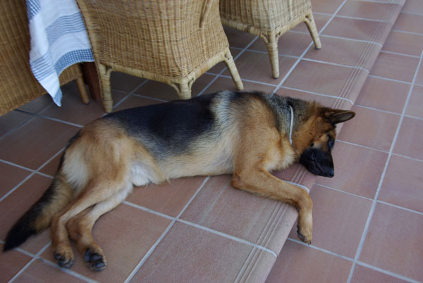 Schäferhund, fremde Leute haben ihn aus der Spanischen