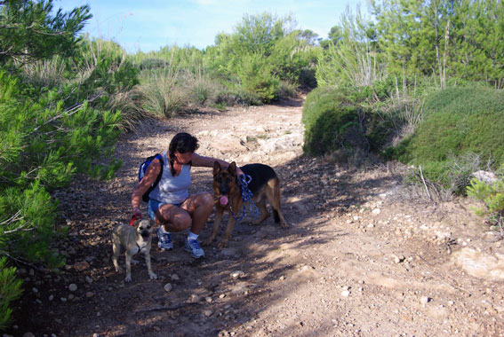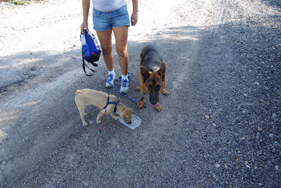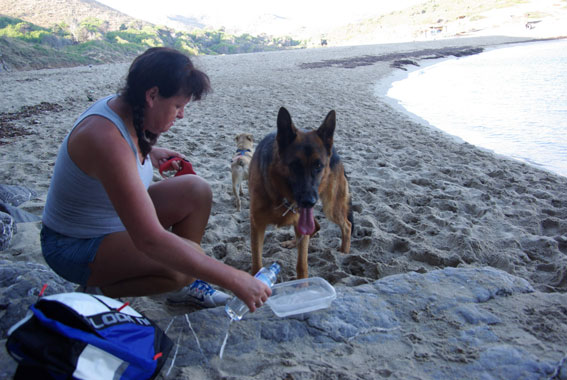 durstig, zum Glück hat Frauchen Wasser mitgebracht. |